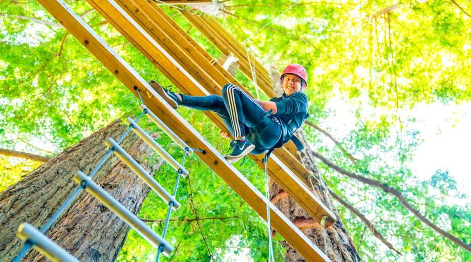 A highlight of Kennolyn’s wide variety of activities, our ropes courses are expansive and challenging. Located in the Redwood trees, the courses tower above the ground and present challenges for all ages. Experienced instructors lead all ropes course activities and safety equipment is provided.